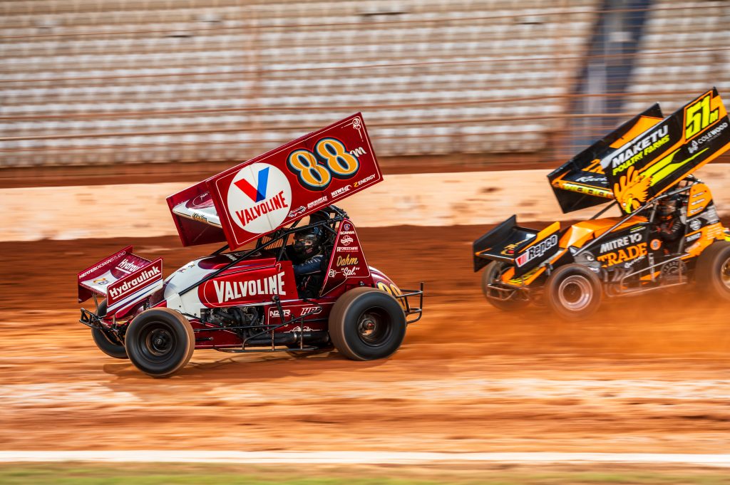 Tokoroa Sprint Car racer Keaton Dahm decided to take an unfamiliar line around the Baypark Speedway oval during the closing laps of the fifth annual Bay Piston Cup 30-lapper on Saturday night.