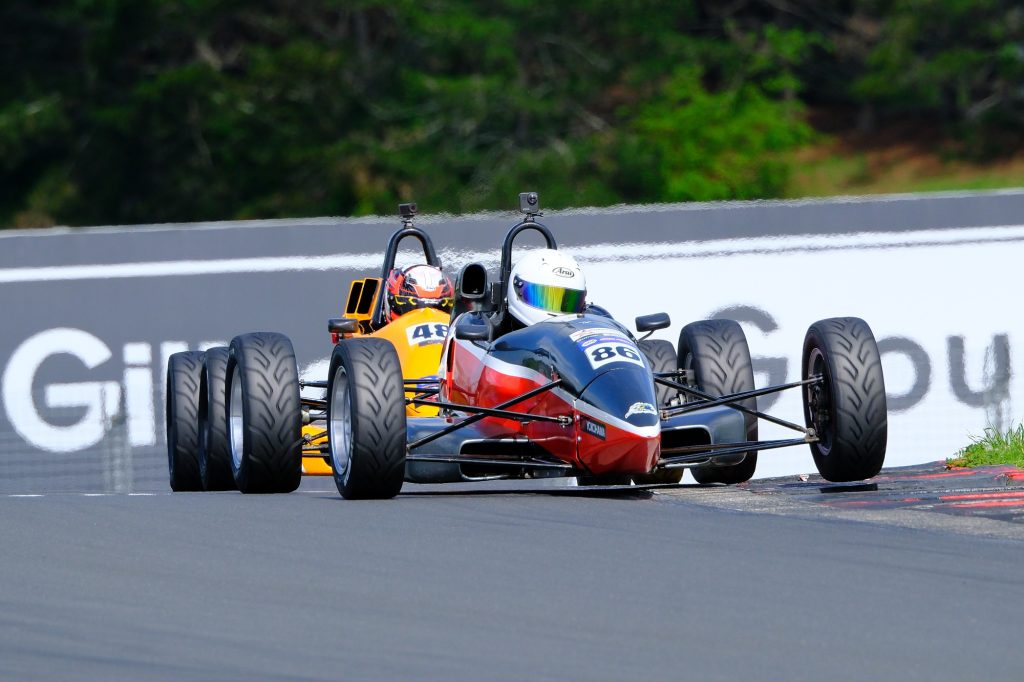 Just one point behind is seasoned campaigner and ex-NZ Formula Ford Champion Shane Drake driving a Class 2 Van Diemen RF92.