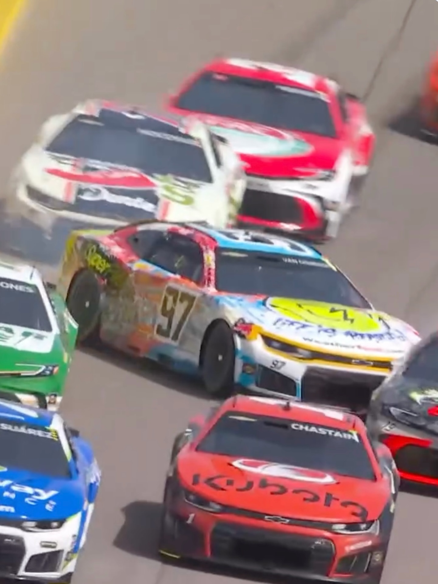 Caught in the thick of the midfield pack, van Gisbergen found himself three-wide on the opening lap. As the field charged out of Turn 4, contact with Erik Jones sent the No. 97 Chevrolet sideways at high speed. The car snapped loose and slid down the track toward the apron, forcing the Kiwi into a dramatic save as the rest of the field thundered past.