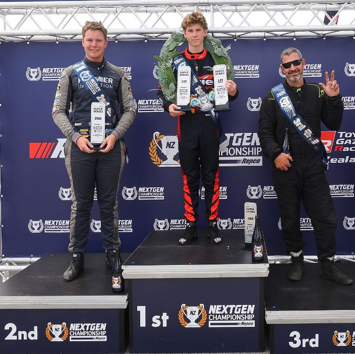Fourteen-year-old Ajay Giddy of Silverdale has taken overall honours at Round 4 of the 2025/2026 Mazda Racing Super Series at Highlands Motorsport Park in Cromwell this weekend.