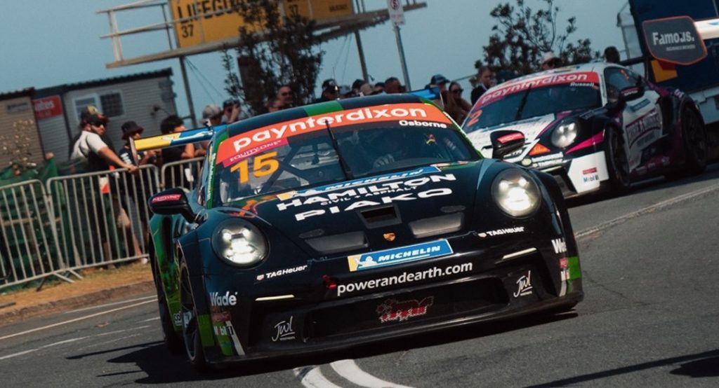 After narrowly avoiding a massive pile-up in Saturday’s race, Kiwi drivers Marco Giltrap and Clay Osborne battled hard to secure top-10 finishes in both races.