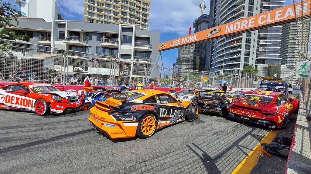 As the Kiwi duo held their ground near the front, disaster erupted at the back of the field on lap 2.