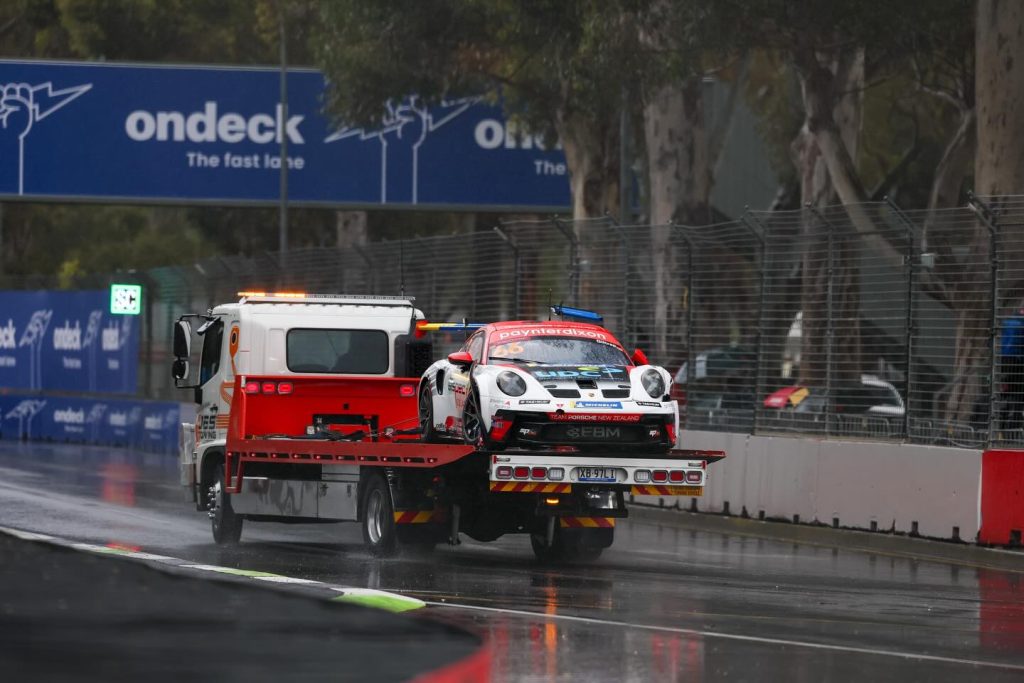 The race was red-flagged as four cars needed recovering and the circuit required extensive repairs. Officials ultimately abandoned the race, awarding half points with no time left to complete repairs safely.