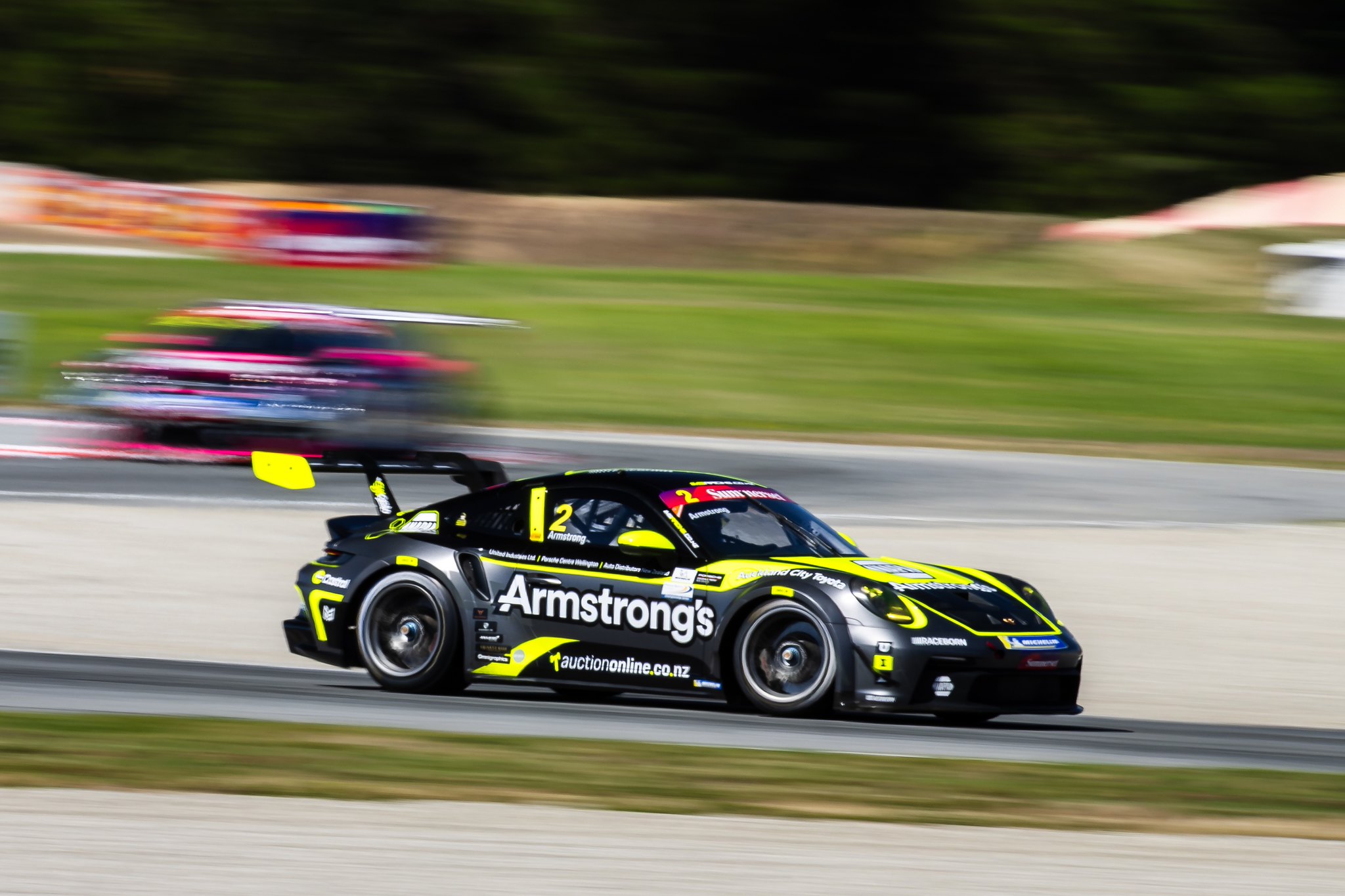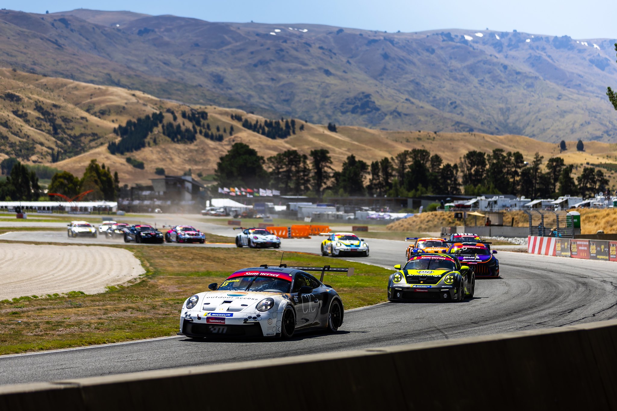 After four rounds, Rick Armstrong leads on 929 points, Nigel Cromie second on 823.5, with Sam Fillmore third on 786.5 – the three drivers all in identical Porsche 992 Cup Cars.