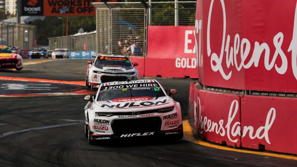 As Payne was pushing up to Feeney, the safety car was brought out after one of the Queensland signs of the fences fell halfway off and had to be removed.