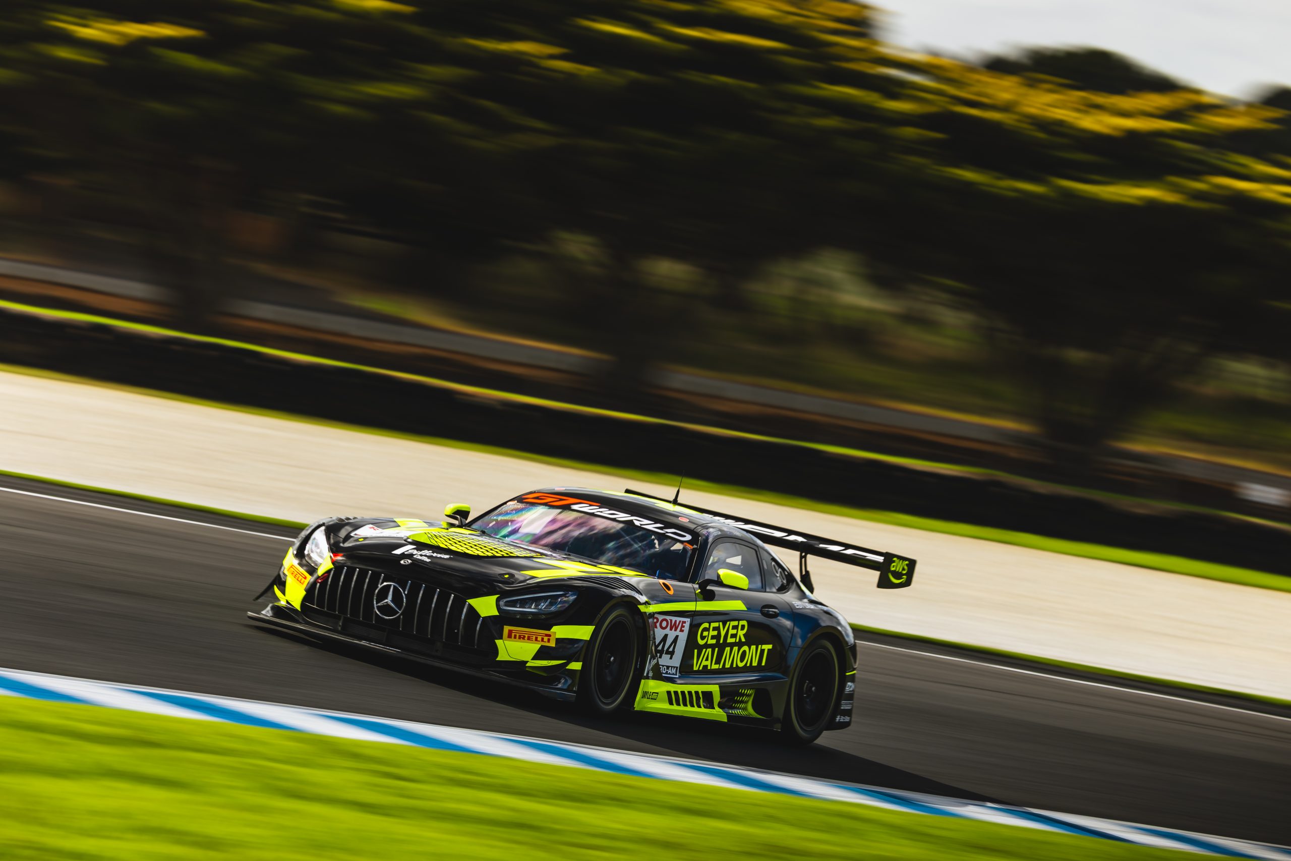 Showers crossed the circuit during an early Safety Car period, and on the restart, Pires spun at the Southern Loop. The No.44 Mercedes-AMG made light contact with the inside marshal post, causing damage to the front splitter and left guard.
