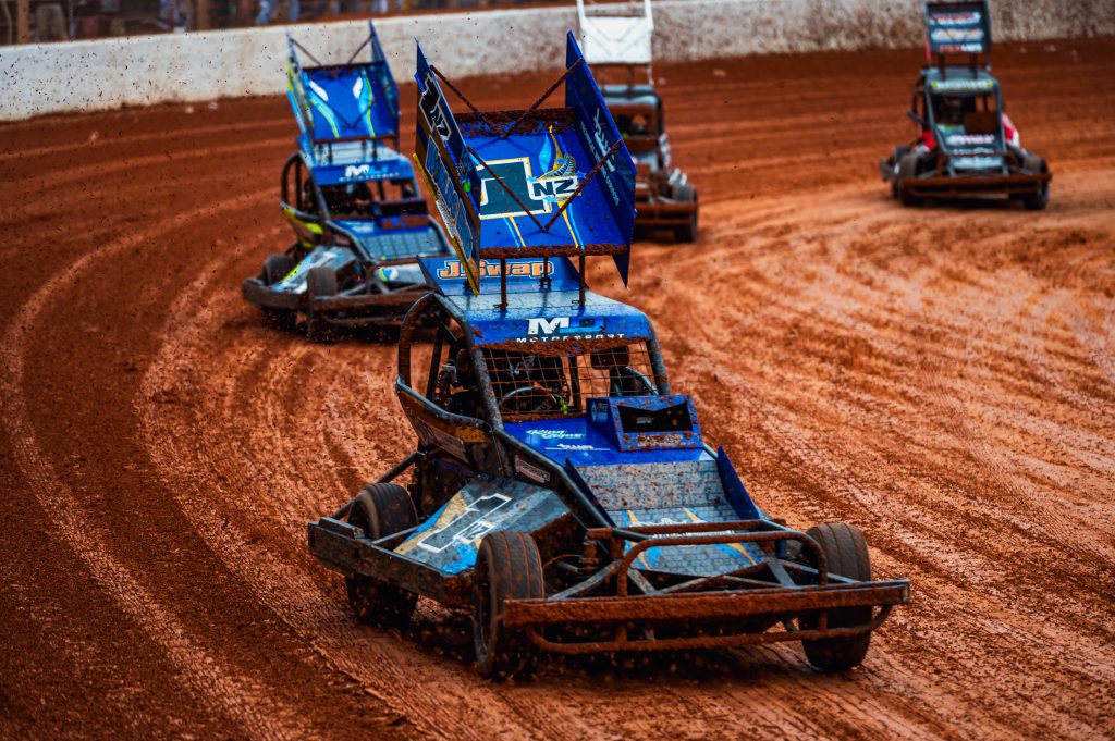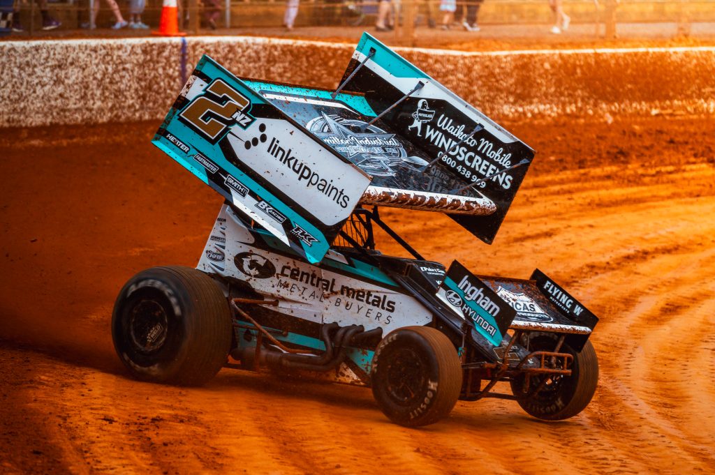 Hamilton’s Daniel Thomas continues to set the early-season benchmark for the Sprint Car division. He drove from a rear starting spot to second place in his first heat race for a big points haul and powered clear to win his next outing to secure a front row alongside Michael Pickens.