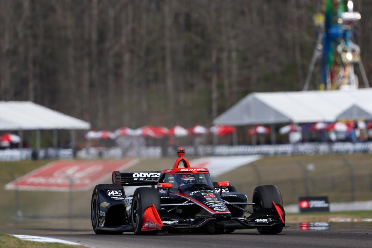 By the tenth lap of the race, Armstrong remained in fifth, Dixon remained in eleventh, and McLaughlin remained in twlefth. At the front, Palou comfortably controlled the race by a second and a half over McLaughlin’s teammate David Malukas, who remained ahead of a fast Graham Rahal.