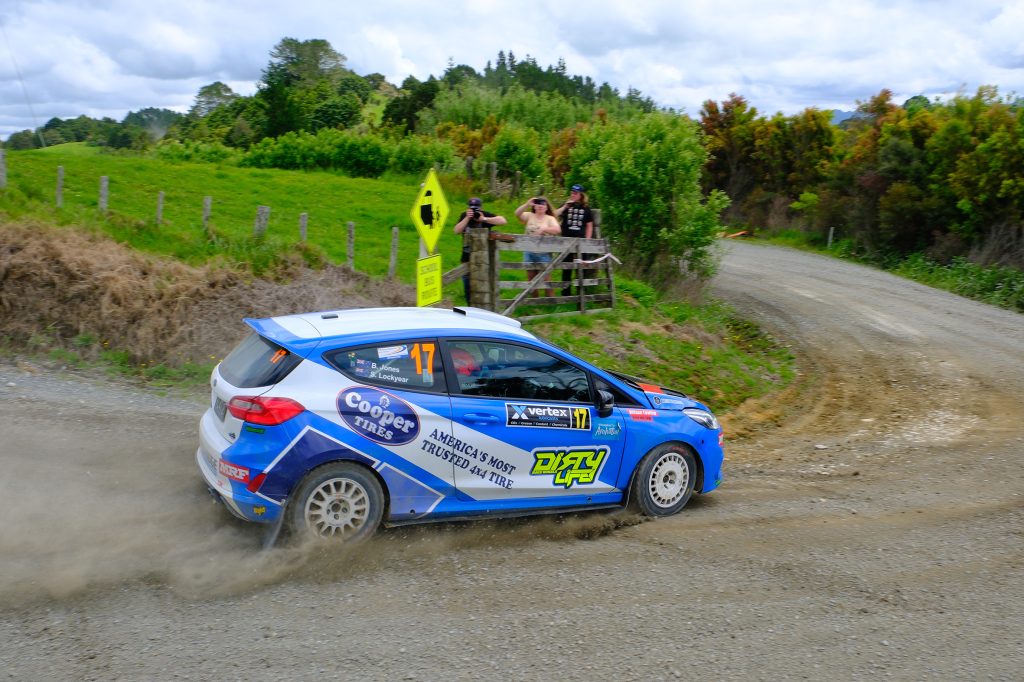In the NZRC 2WD category, Bryn Jones (Ford Fiesta) remained in contention but trailed Tim Mackersy (Ford Fiesta) by 37.7 seconds after day one.