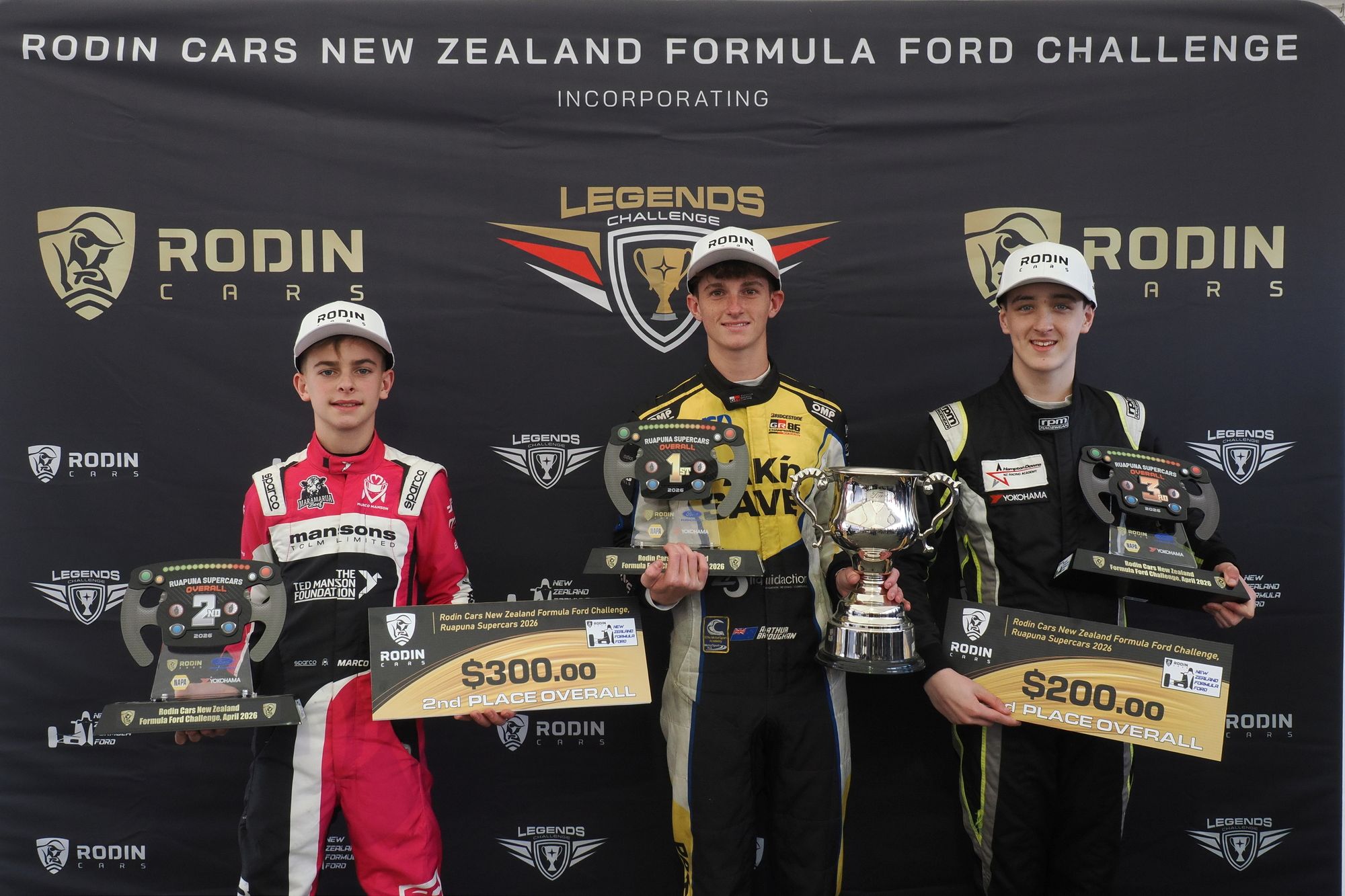 Arthur Broughan has won the 2026 Rodin Cars New Zealand Formula Ford Challenge, incorporating Legends, held as a support category for the Christchurch Supercars round over the weekend.