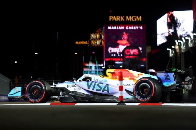 Practice 3 started with a slippery track as it was declared wet after rain fell a couple hours before the session started. While it had been drying out, the cold Las Vegas weather meant it was still damp.