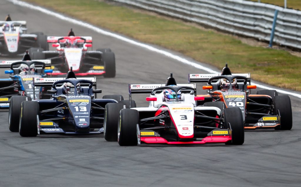 Scoular and Slater –on fresher tyres – made an early getaway and were over two seconds ahead of Wood at the end of lap one, with Wharton, Sharp, Ugo Ugochukwu, Ernesto Rivera, Jin Nakamura, Kanato Le and Yevan David in hot pursuit.