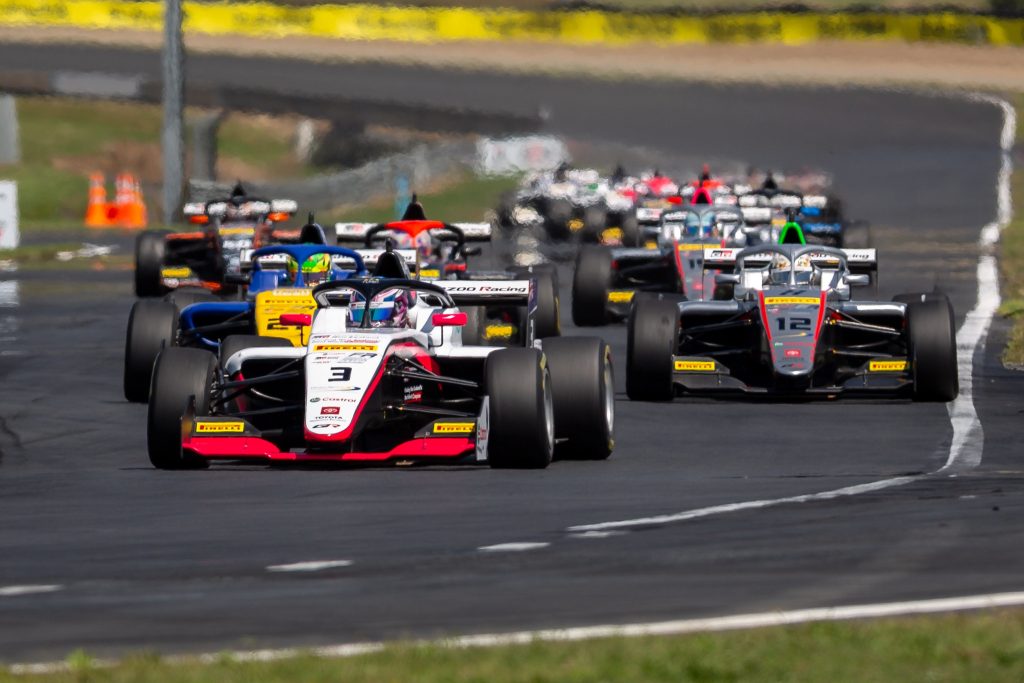 Zack Scoular made it a fine day for Kiwi race drivers as he took victory in the second race of the day at Hampton Downs on the opening day of the 2026 Castrol Toyota Formula Regional Oceania Trophy.