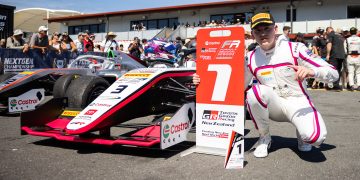 A fine start from the front row set the scene for a strong drive by the mtec Motorsport racer all the way to the flag, with the 2025 Rookie Champion racing away from Hitech’s Jin Nakamura.