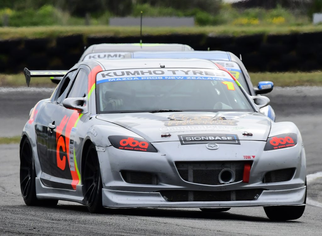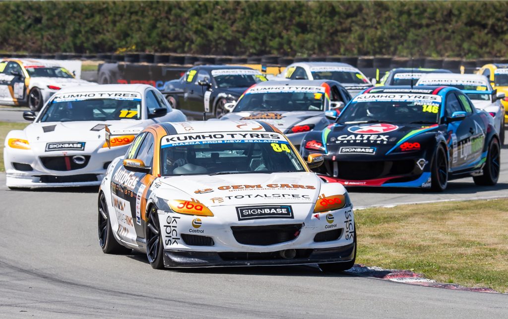 The Mazda Pro8 New Zealand series acknowledges the support from Kumho Tyres, Disc Brakes Australia, HM Auto Electrical, Silvester V8 Performance, and Sign Base.
