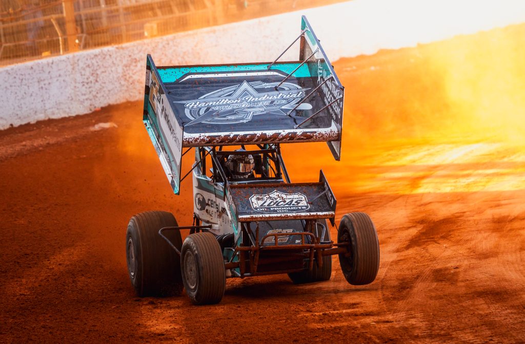 “I went from fourth to second pretty quickly, and that got me up there. Racing for the lead with Insley, I showed him the bottom (lane) and then I had to work out another way to get around him,” says Fabish.